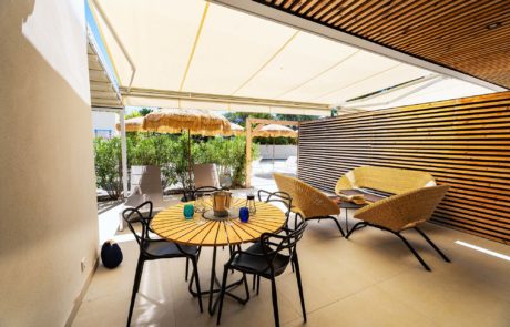 La suite Élégance est un appartement climatisé de 3 pièces d’une surface de 85 m², disposant en outre d’une terrasse de 45 m² depuis laquelle vous pourrez admirer le luxuriant jardin et la piscine.